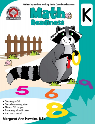 The full-colour CCP Kindergarten Math Readiness workbook helps children practise key early math skills that are part of the kindergarten curriculum across Canada. Its activities focus on counting to 20, Canadian money, introduction to telling time, 2D and 3D shapes, patterning, classification, and much more. Written by a teacher working in a Canadian classroom, this workbook fosters early mathematical skills that prepare children for success in the classroom