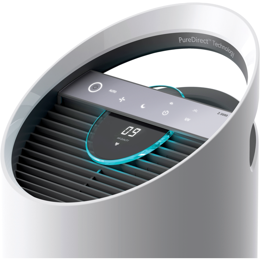 Say goodbye to dust, pollen and other allergens. Place the remote SensorPod away from the air purifier to optimize clean air delivery. A colour-coded illuminated ring and numerical value communicates good, moderate or poor air quality. Covers 750 sq. ft. Carbon, HEPA and UV filters. Auto and dimmer mode. Timer settings of 2, 4, 8, or 12 hours. Filter change indicator type. 33-64 dB noise level. 2-year warranty. White.