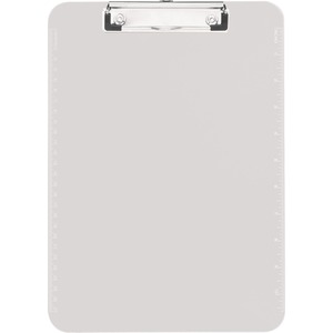 Clipboard provides a stylish, functional way to write without the use of a desk. Flat clip makes this durable, transparent plastic clipboard space-efficient and easy to use. Imprinted rulers on both sides of the clipboard have measurements in Imperial and metric. Clipboard includes a pullout tab for hanging.