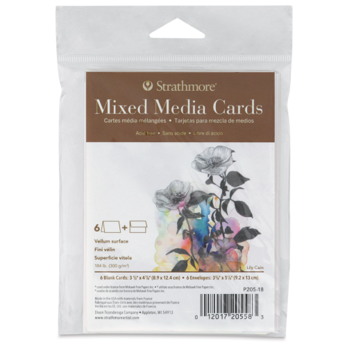 These heavy weight 184 lb. cards offer the attributes of a watercolor paper but with a vellum drawing finish. They are ideal for watercolor, gouache, acrylic, graphite, pen and ink, colored pencil, marker and collage. All cards comes with accompanying envelopes with a unique, beautiful deckle edge. Acid free.