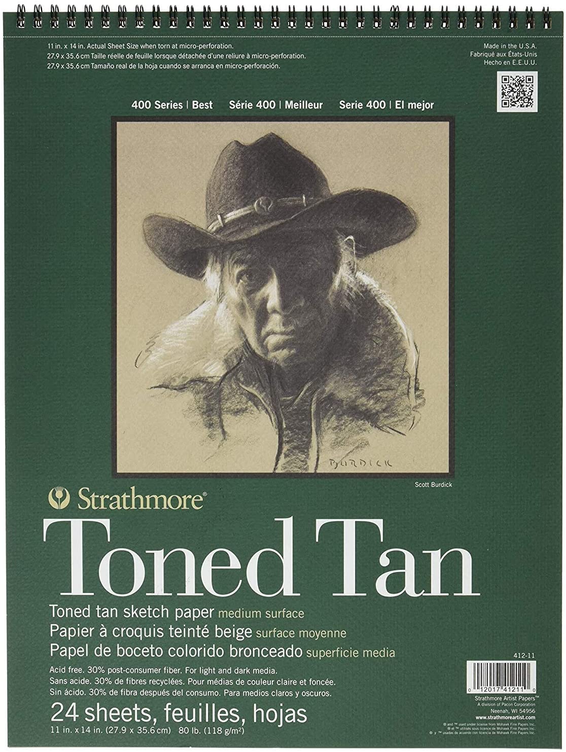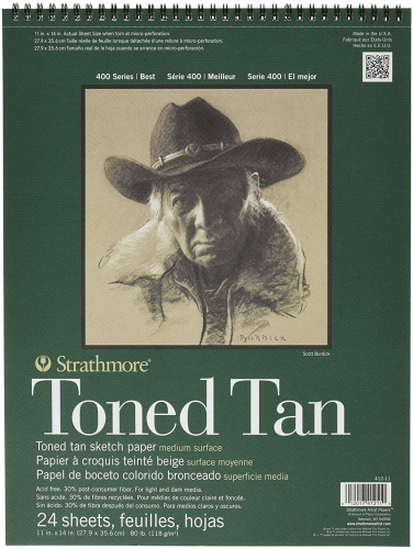 This sketch paper is ideal for light and dark media. 100% recycled, contains 30% post-consumer fiber, acid free.