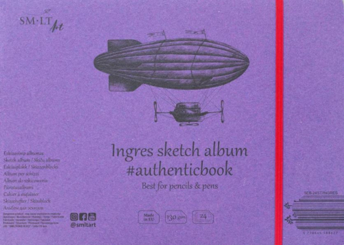 With natural white Ingress paper. With cotton. Best for pastels, pencils, crayons, pens, chalks, charcoal. Inside paper is Wood-free, Long life and pH Neutral. With natural coloured cardboard cover and divider. The album is stitched, with panoramic drawing possibility.
