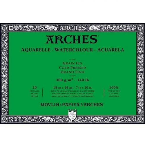 ARCHES® Watercolour Cold Pressed 7″ x 10″ – 140lb / 300gsm Natural White Block, 20 Sheets