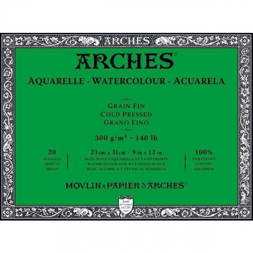 ARCHES® Watercolour Cold Pressed 9″ x 12″ – 140lb / 300gsm Natural White Block, 20 Sheets