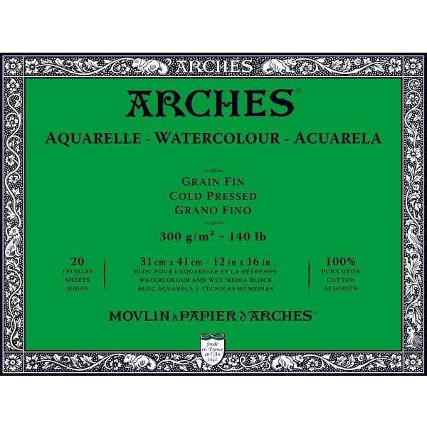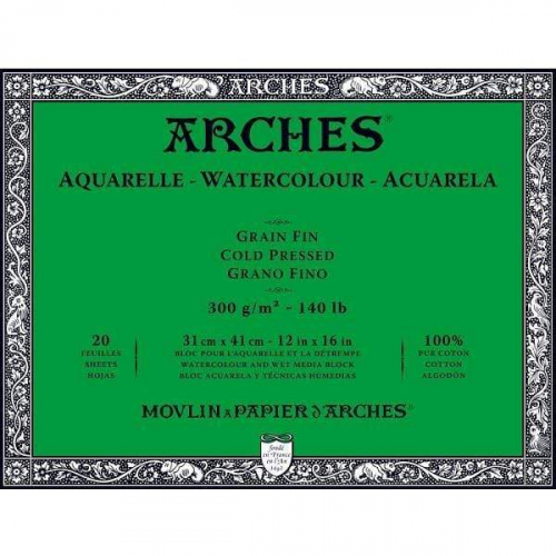 ARCHES® Watercolour Cold Pressed 12″ x 16″ – 140lb / 300gsm Natural White Block, 20 Sheets