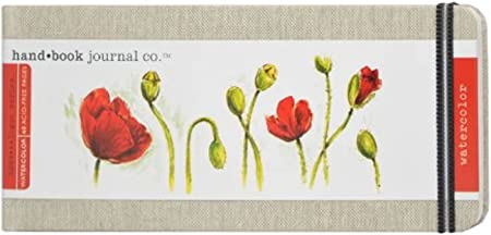 Bound in a beautiful linen book cloth cover, these journals offer watercolorists a practical option for travel painting. Each hardcover book includes 30 sheets (60 pages) of a soft white, 200 gsm acid-free paper with a cold press finish that is the same on each side of the sheet. They have a durable elastic closure and a clear envelope on the inside back cover.