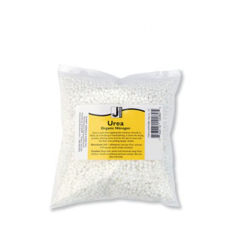 Urea is a humectant that attracts moisture from the air. Urea is used when applying dye solutions directly to fabric, as in tie dyeing or hand painting. It slows the drying process; therefore it allows more time for the dye to react with the fiber and yields deeper shades. Urea can be used with Sodium Alginate thickener for screen printing, painting or direct dye application.