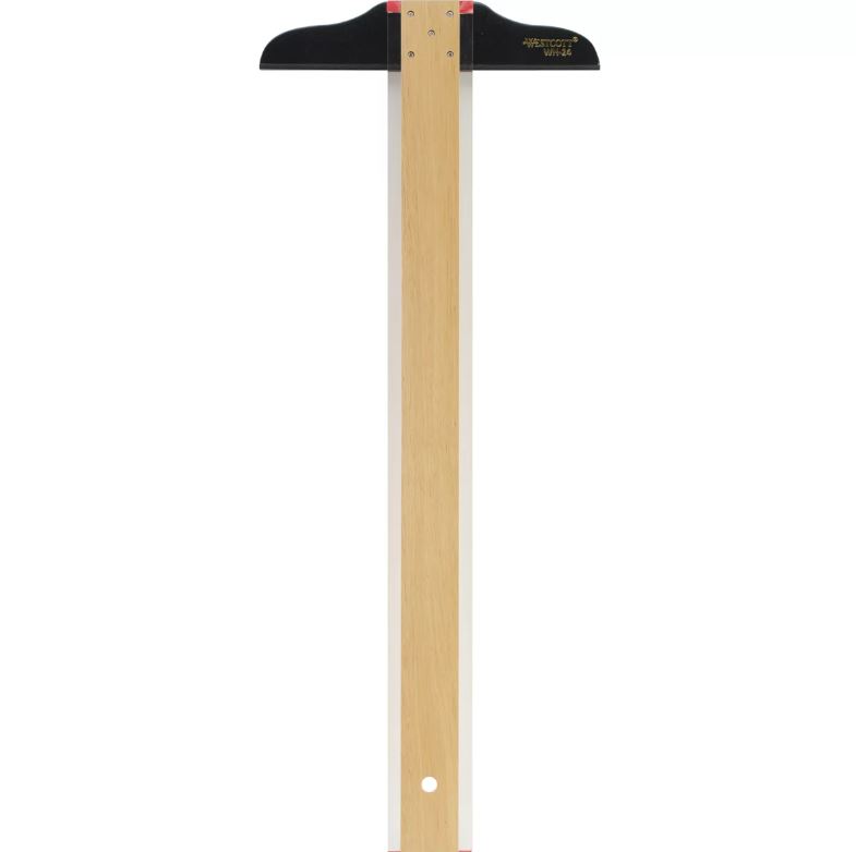 Traditional professional T-squares feature solid wood blade with natural wood grain and clear acrylic edges with inking lift. Affixed with five screws to full-sized wood head.