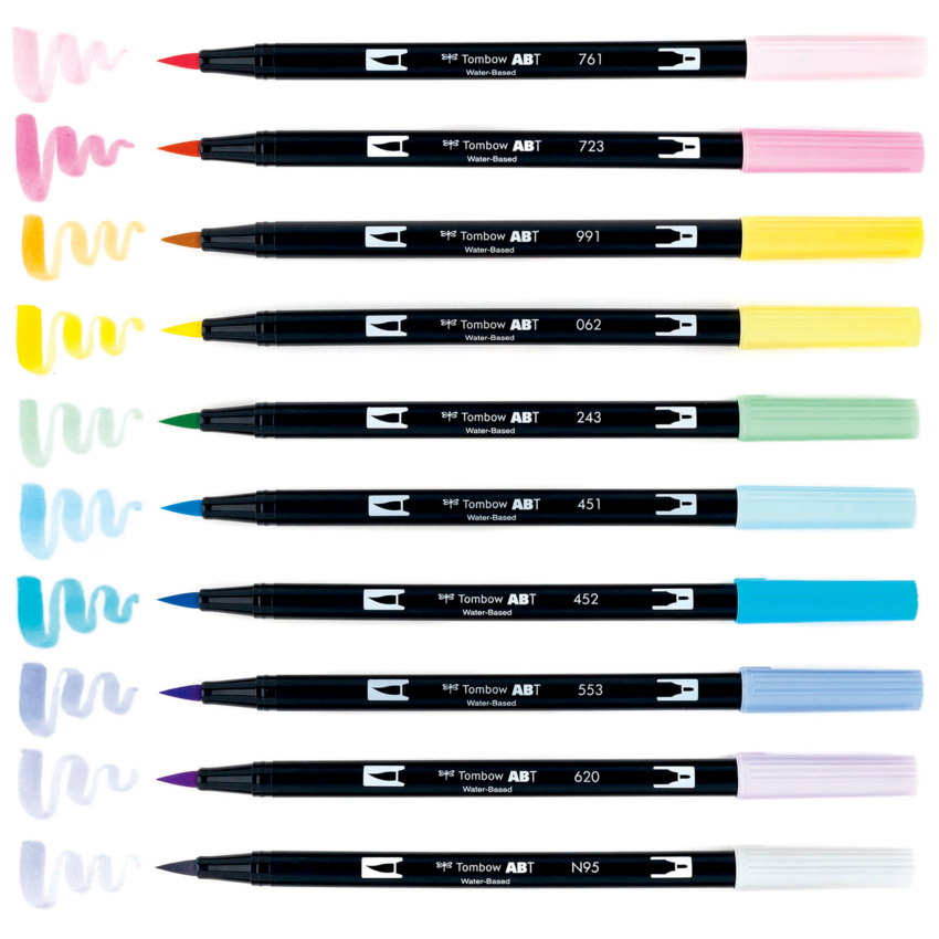 Our Dual Brush Pens Pastel 10-pack is ideal for creating art with soft pastel colours.