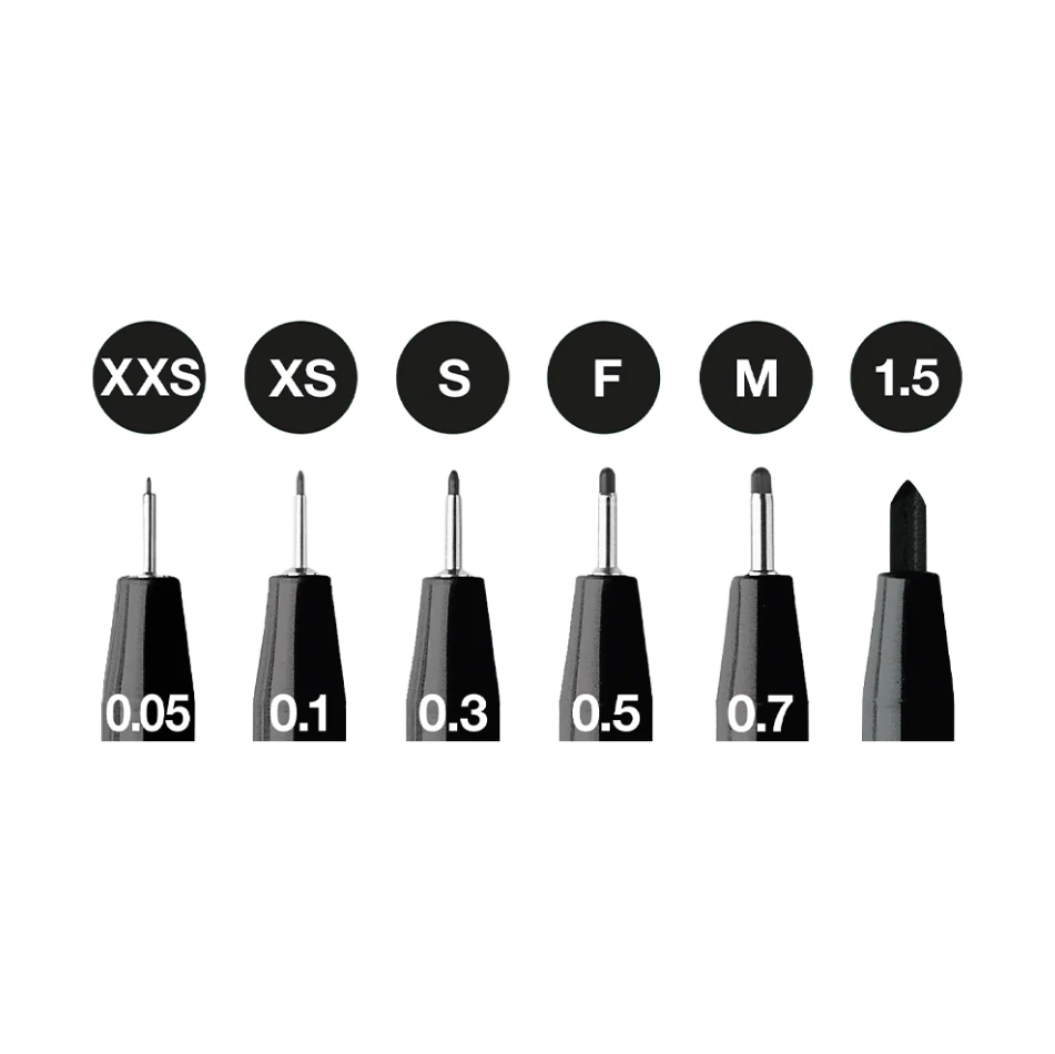 Contents: XXS=0.05mm, XS=0.1mm, S=0.3mm, F=0.5mm, M=0.7mm, 1.5mm