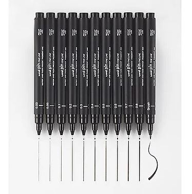 uni PIN Fineliners are loved by artists and professionals around the world. Especially suited for drawing, illustration and design, this versatile fineliner features Super Ink technology, which provides high intensity, depth and water-resistance without bleed-through. The nib is supported and protected by steel meaning the PIN drawing pens are long-lasting and will not be damaged from use with stencils. The pigmented ink is quick-drying for smudge-free erasing while inking over drawings.