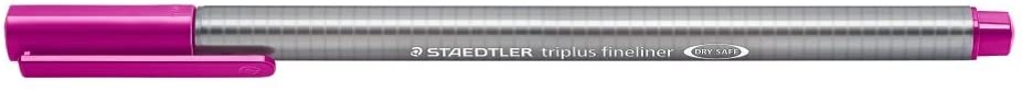 Triplus Fineliner Pen with 0.3mm tip features a dry-safe formula that lets you leave the cap off for days without the ink drying up for long-lasting, cost-efficient use. Its ergonomic barrel provides a comfortable grip for relaxed, fatigue-free writing all day long. Water-based ink washes out of many different textiles to help you quickly clean up accidental marks. Airplane-safe design uses automatic pressure equalization to prevent your pen from leaking when you're on a flight.