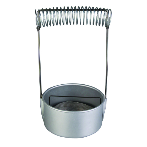 Metal brush washer and stand. Includes well with cleaning grid to hold water or solvent, and coiled brush stand to allow brushes to dry while pointing downward.
