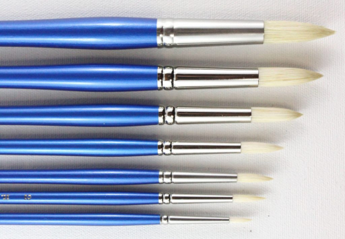 Finest quality bristle for general detail work. Long handle. For use with Oil and Acrylic paints.