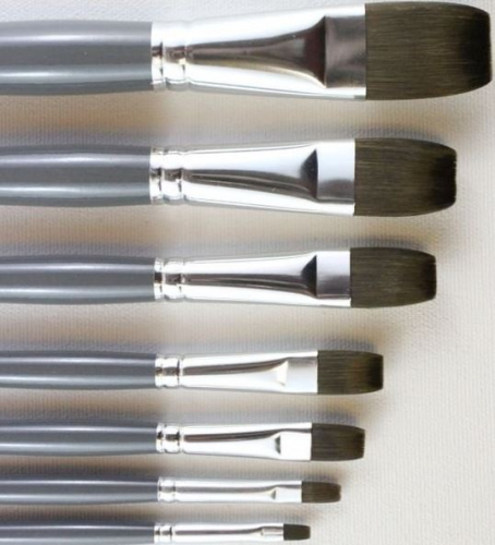 100% synthetic filament, artificially tapered like the shape of natural animal hairs but with superior wearing durability. For heavy bodied paint. Long handle.