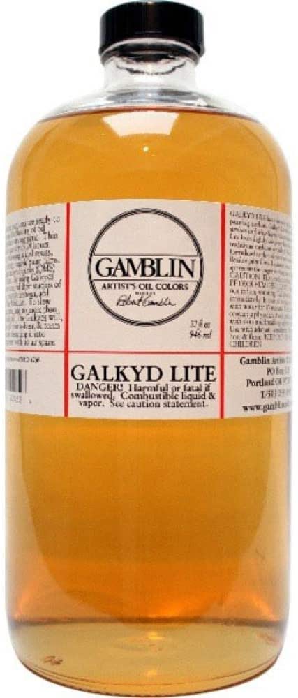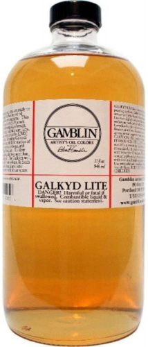 Galkyd is an alkyd resin painting medium that increases the fluidity of oil colours and speeds their drying time. Thin layers of oil colours are dry in 24 hours. The viscosity of Galkyd is similar to traditional painting mediums made from linseed stand oil. Galkyd levels brush strokes, creates a strong flexible paint film and leaves an enamel like glossy finish. Galkyd is ready to use. Thins with odourless mineral spirits. Painters can add up to 50% by volume odourless mineral spirits to change the viscosity of Galkyd for glazing. Galkyds are excellent glazing mediums.