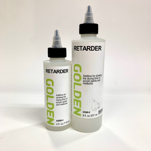 Retarder is an additive used to increase the open (drying) time of acrylic paints. Useful for wet in wet techniques and reducing skinning on the palette.