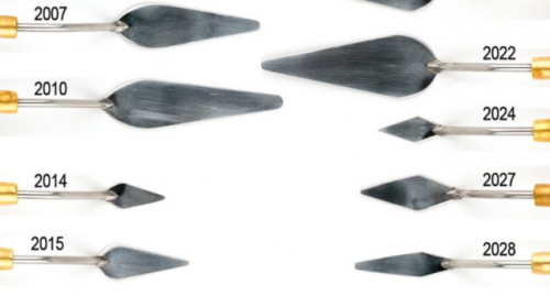 Painting knives, ideal for mixing or applying paint. Made of flexible metal and available in different shapes.
