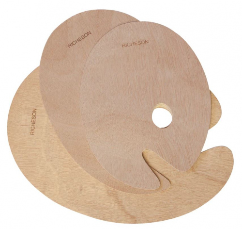 Wooden palettes were one of the first mixing surfaces used by artists, and probably as old as art itself. They are great for mixing oil colors, acrylics, alkyds or any thick-bodied paint. Classy and sturdy, these palettes are sure to make any artist feel like a professional! The underside of the thumb hole is reinforced with wood for extra stability, so the palette doesn't sit flat on surfaces.