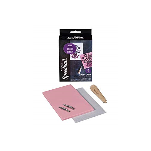 Perfect for relief printers and stampers alike, the Speedball Speedy-Carve Kit includes (1)ea. of the following: Wooden Lino Handle, #2 & #4 Lino Cutters, 4" x 6" Speedy-Carve Block, tracing paper and instructional booklet.