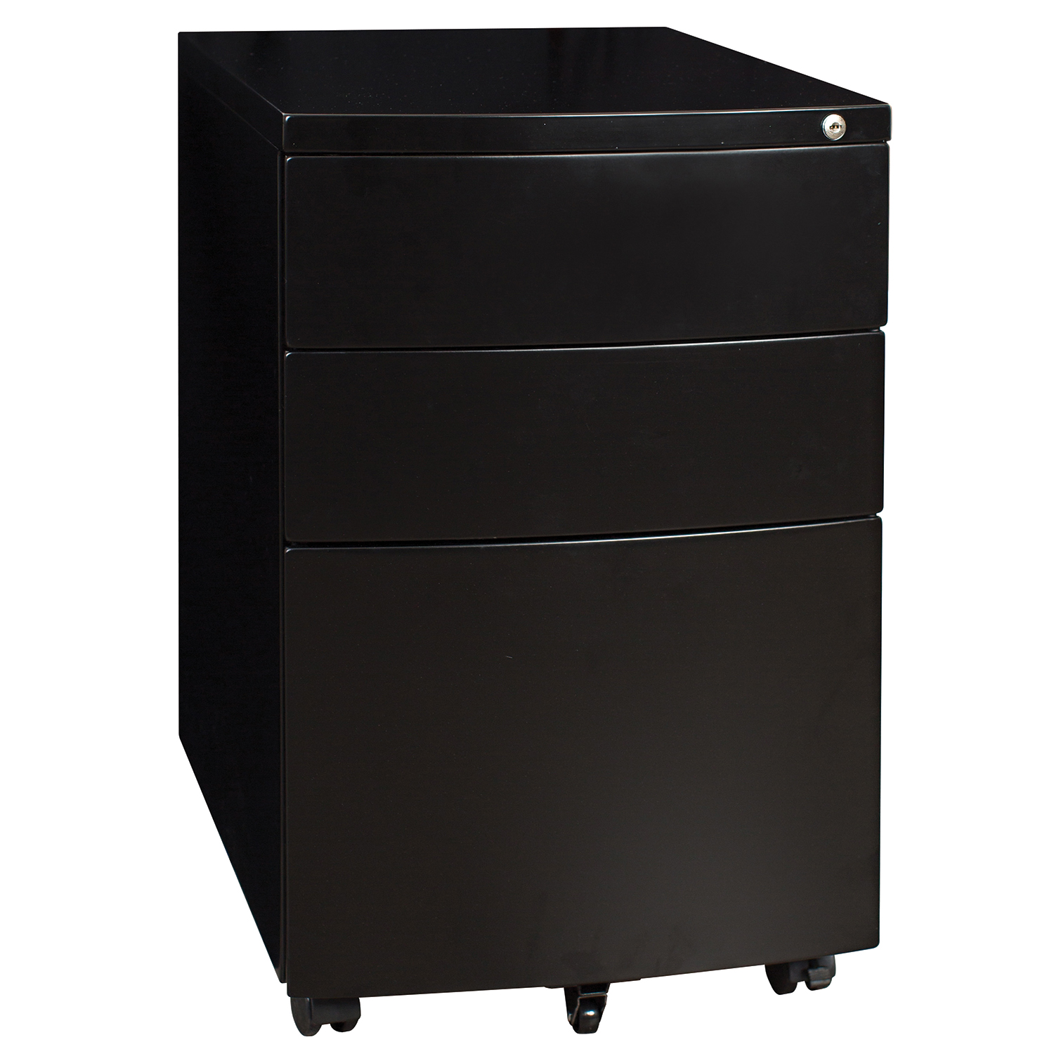 Titan collection from HDL. Metal mobile pedestal. 2 utility and 1 file drawers for letter or legal file sizes. Full extension ball bearing slides for easy opening/closing. Recessed full pull handles with lock. Available in white, titanium or black finish. 15 1/2W x 22 1/2D x 25H.