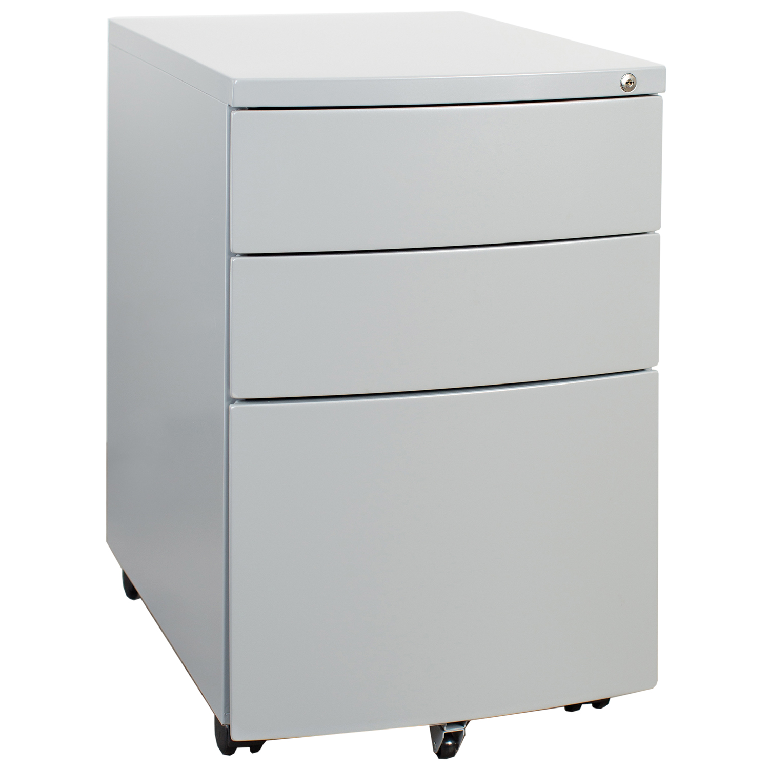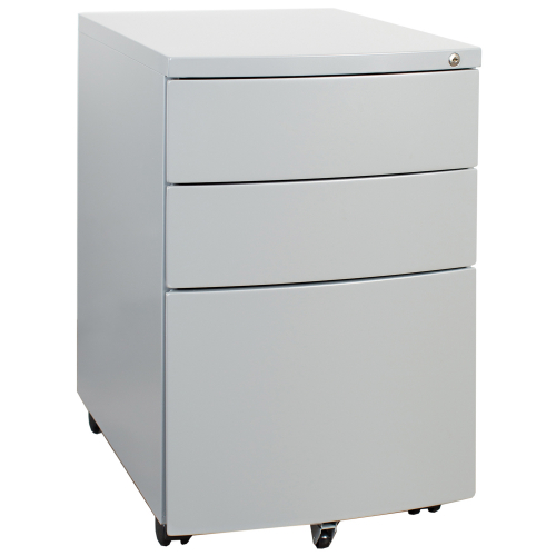 Titan collection from HDL. Metal mobile pedestal. 2 utility and 1 file drawers for letter or legal file sizes. Full extension ball bearing slides for easy opening/closing. Recessed full pull handles with lock. Available in white, titanium or black finish. 15 1/2W x 22 1/2D x 25H.