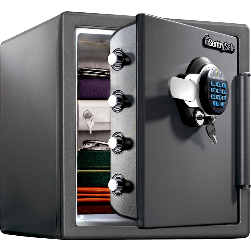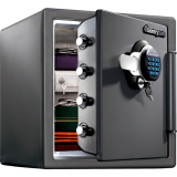 Pry-resistant hinge bar reinforces the door of the safe for added protection against theft.