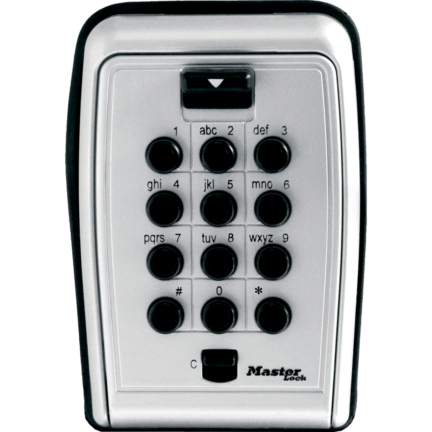 Protective weather cover prevents freezing. Large internal cavity and removable key hook prevents jamming. 4,096 possible combinations. Wall Mount. Push button. Alpha and numeric. 4,096 possible combinations. Durable metal construction. Holds up to 5 keys or access cards. 3-1/4"W x 2"D x 4-11/16"H. Grey.