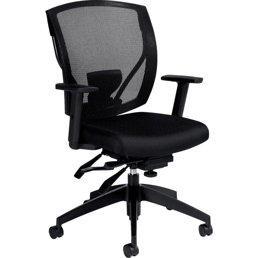 Multi-tilter mechanism, classic air-flow mesh back design with a fully upholstered seat, infinite position tilt lock and tilt tension adjustment. Independent back & seat angle adjustment. Forward seat angle adjustment. Lumbar support with height adjustment. Height-adjustable arms with durable self-skinned urethane armcaps. Dual wheel carpet casters. Pneumatic seat height adjustment. Optional sliding seat depth adjustment.