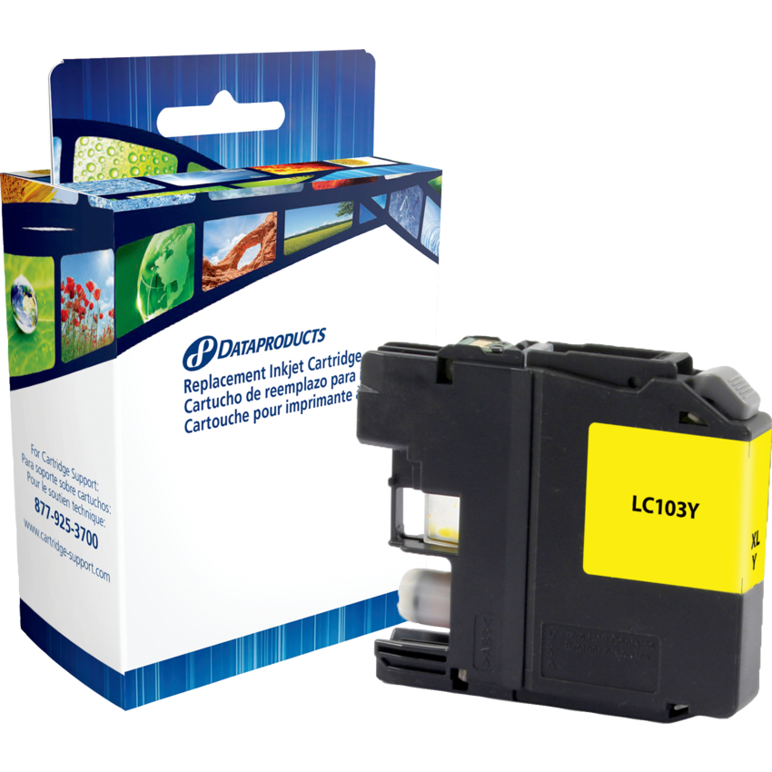 The Dataproducts brand provides incomparable quality and performance, a broad product line and significant cost savings. Dataproducts imaging supplies are designed, engineered and produced to be a true alternative to the OEM. The entire Dataproducts line. OEM# LC103XL. Dataproducts®. Brother DPC-J152W; MFC-J245, MFC-J285DW, MFC-J4310DW, MFC-J4410DW, MFC-J450DW, MFC-J4510DW, MFC-J4610DW, MFC-J470DW, MFC-J4710DW, MFC-J475DW, MFC-J650DW, MFC-J6520DW, MFC-J6720DW, MFC-J6920DW, MFC-J870DW, MFC-J875DW. Contains a minimum of 100% post-consumer recycled content. Yields 600 pages. High Yield. Yellow.