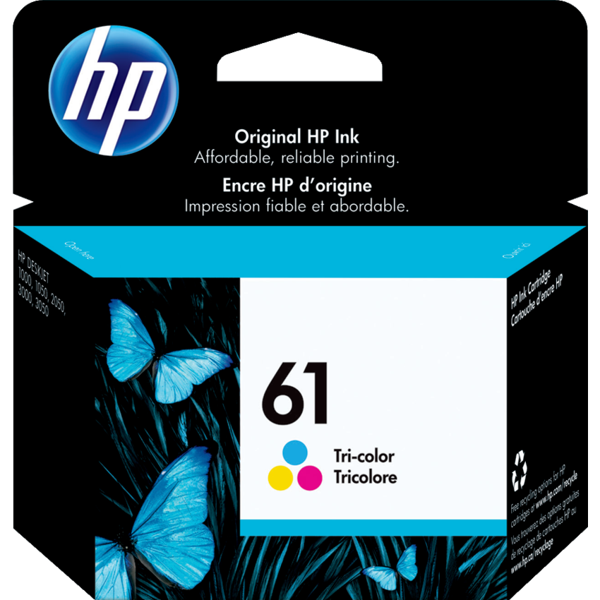 61. HP. Deskjet 1000, 1010, 1012, 1050, 1051A, 1055, 1056, 1510, 1512, 1514, 2050, 2510, 2512, 2514, 2540, 2541, 2542, 2544, 2545, 2546B, 2546P, 2546R, 2547, 2549, 3000, 3050, 3050A, 3051A, 3052A, 3054, 3054A, 3056A, 3510, 3511, 3512, ENVY 4500, 4501, 4502, 4504,. Yields 165 pages. Tricolour.