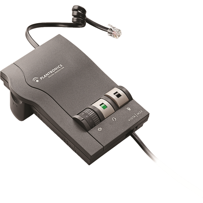 For use with Supra™, SupraPlus®, Mirage™, EncorePro and DuoSet™ headsets. Near-universal compatibility with both single and multi-line telephones. Features volume control, headset/handset and mute buttons. 10' coil cord. RJ9 connector and Quick Disconnect™ plug.