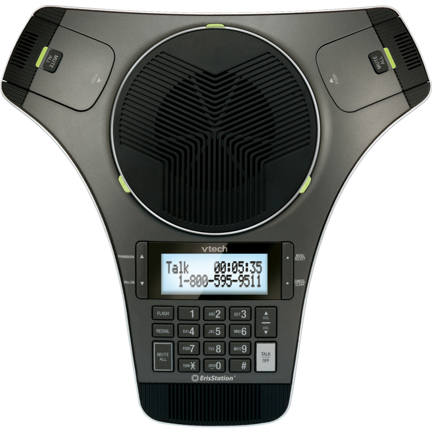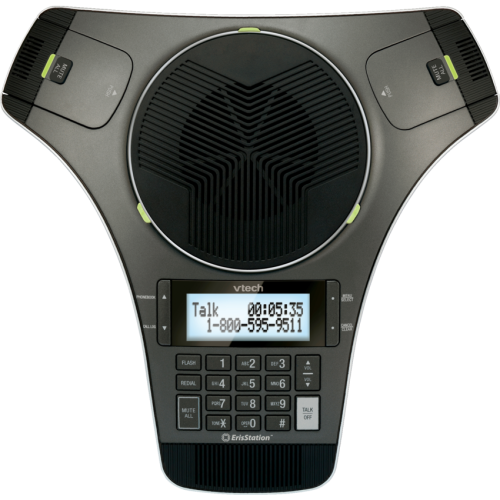 DECT 6.0 wireless technology. 2 wireless microphones included. 150 foot wireless range from base. Up to 12 hours of talk time, 70 hours of standby. 50 phone book entries and 50 CID log entries. Two line backlit display with date and time. Wireless microhone chargers built into central unit.
