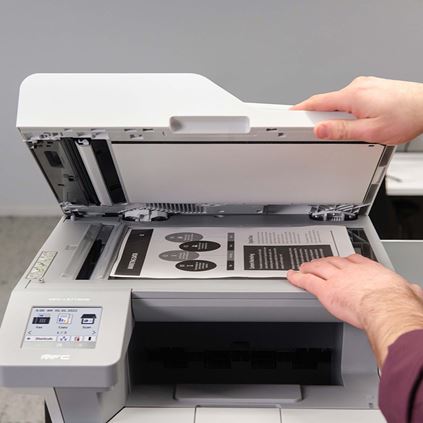 The Brother Workhorse MFC-L5715DW business monochrome laser printer is a great choice for busy offices and small workgroups that need low-cost printing, versatile paper handling, advanced security features, and reliable, high-quality output. This high-performance all-in-one printer helps to increase productivity with fast print and copy speeds up to 48ppm. Delivers built-in value with an included 6,000-page toner cartridge and low-cost printing by using the TN920UXXL Brother Genuine ultra high-yield replacement toner cartridge. Triple Layer Security features help to limit document and device access and protect against network intrusions. Offers expandable paper capacity that is scalable as your business needs grow. Quickly scan multi-page documents to a wide variety of destinations using the 50-page capacity auto document feeder. The 3.5” touchscreen display allows for the creation of customized shortcuts to your most frequently used workflows. The MFC-L5715DW also offers flexible connectivity with built-in Gigabit Ethernet and dual band wireless networking, plus convenient mobile device printing to meet mobile workforce demands.