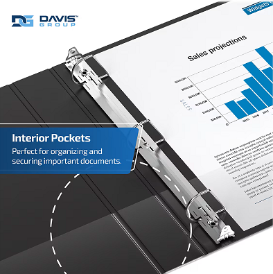 Clear interior pockets on front and back covers to secure loose documents and allow for easy identification of content.