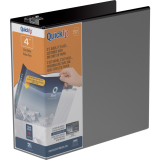 Customize the front cover and spine at the same time with a wraparound, easily loaded sheet. Rings mounted on back to allow pages to lie flat. See quickfitbinders.com for easy to use templates. Features ink transfer-resistant overlay. Interior front and back cover pockets. PVC free polypropylene material. 4" capacity, with locking rings. Black. Also available in a carton of 6.