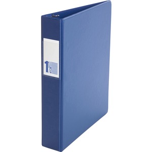 Clear full width label holder on spine and two clear interior pockets to secure loose documents and allow for easy identification of content. Contains a miminum of 42% post-consumer recycled material. PVC-free polypropylene. 1-1/2" capacity. Royal Blue.