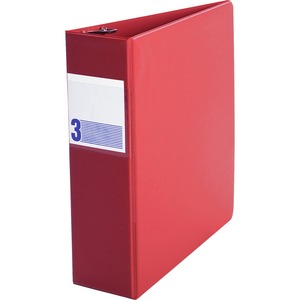 Clear full width label holder on spine and two clear interior pockets to secure loose documents and allow for easy identification of content. Contains a miminum of 42% post-consumer recycled material. PVC-free polypropylene. 3" capacity. Red.