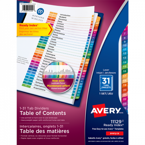 Product Name: Ready Index Customizable Table of Contents Classic Multicolor Dividers