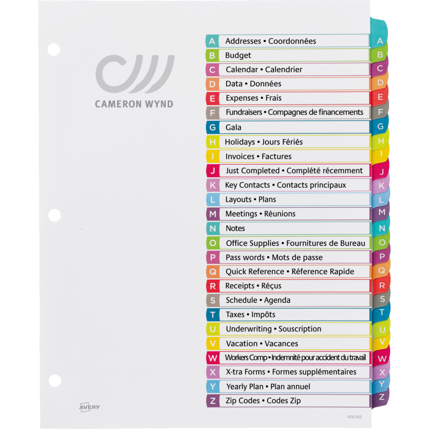 Avery® Ready Index® Customizable Table of Contents Dividers A-Z Tabs