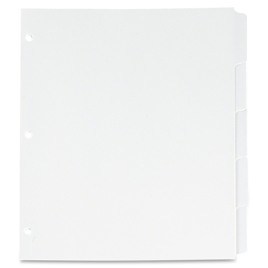 Use these plain tab index pages to create titled index pages with pen, pencil or labeler. Eco-friendly design is made with post-consumer material to minimize its overall impact to the environment. Seven point stock is three-hole punched for immediate use with standard three-ring binders (sold separately). Five-tab dividers are perfect for office, home and school use.