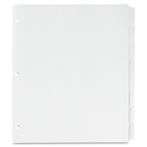 Use these plain tab index pages to create titled index pages with pen, pencil or labeler. Eco-friendly design is made with post-consumer material to minimize its overall impact to the environment. Seven point stock is three-hole punched for immediate use with standard three-ring binders (sold separately). Five-tab dividers are perfect for office, home and school use.