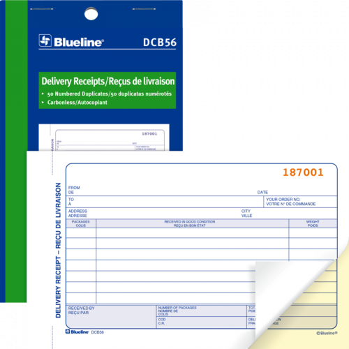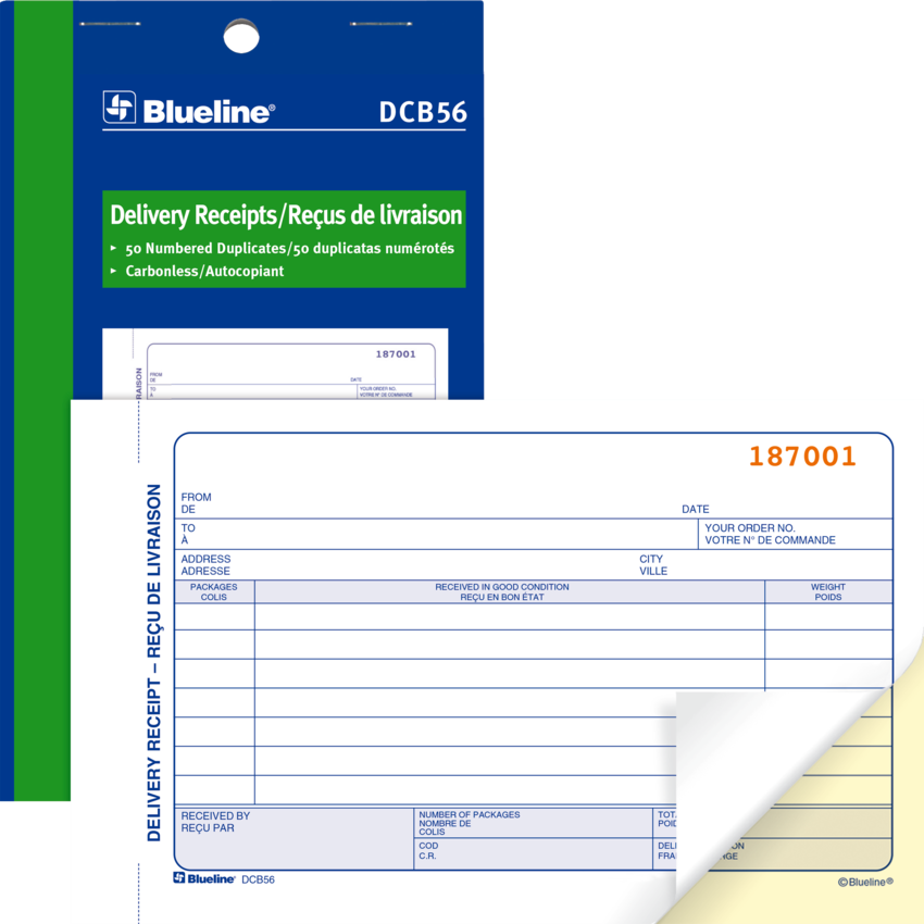 Blueline® Delivery Receipts 2-part 4-1/4x7" Bilingual