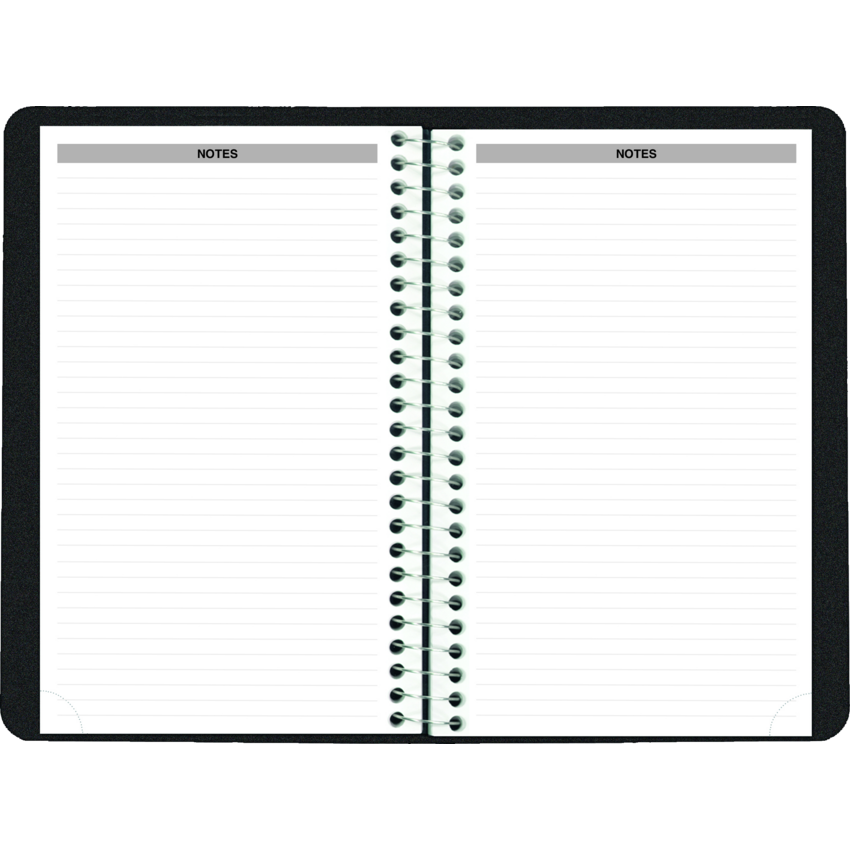 Contains a minimum of 50% post-consumer recycled content. Soft poly cover. Spiral wire binding. 1 page per day. Appointment schedule from 7:00 a.m. to 7:30 p.m. in 1/2 hour intervals. Saturday and Sunday on one page. Past, current and 2 future months reference. 8" x 5". English. Black.