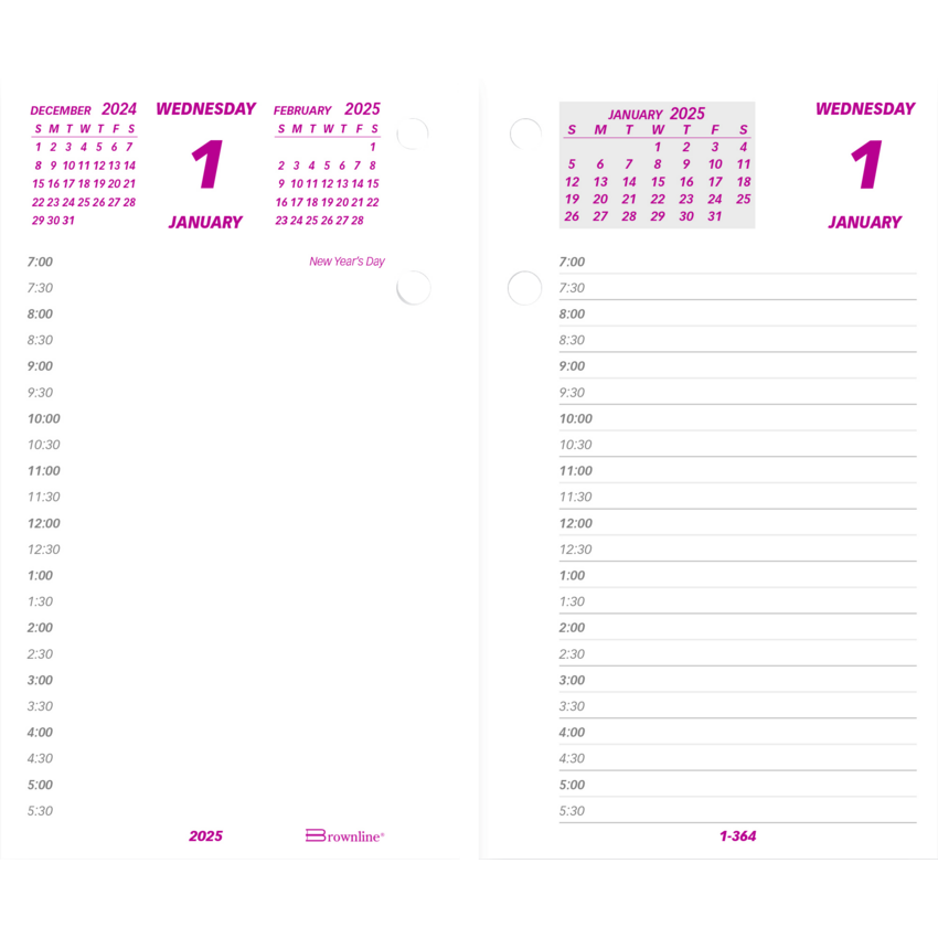 Arch style. English. 2 pages per day. Half-hour intervals. Loose sheet mounting. 6" x 3-1/2".