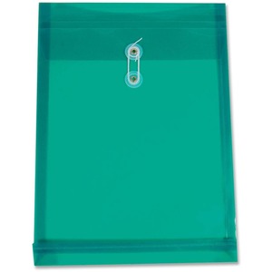 Durable construction. Resists moisture, stains and tears. Button and string closure Top load. Features 1-1/4" expansion. Poly. 9-3/4” x 13-1/4”. Green. Also available in a box of 12.