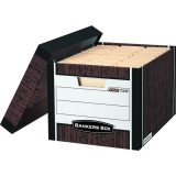 Fast-fold® set-up Contains a minimum of 50% post-consumer recycled material. Locking lid. 850 lb. stacking strength. Letter or Legal size. 12"W x 15"D x 10"H. Woodgrain. 12 boxes/ctn.