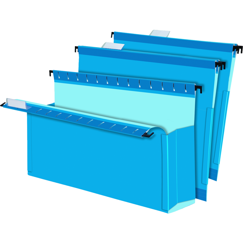 The ideal project file, a box-bottom folder with closed sides. Sides are made of durable, tear-resistant material. Reinforced at bottom with a heavy pressboard insert. SureHook™ technology with built-in tension springs Contains a minimum of 10% post-consumer recycled material. Includes blank tabs and inserts. Letter size. 3". Blue. 25/box.