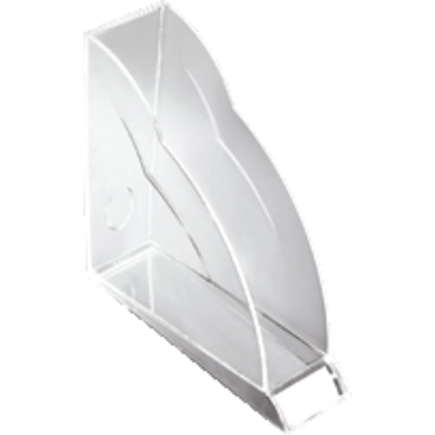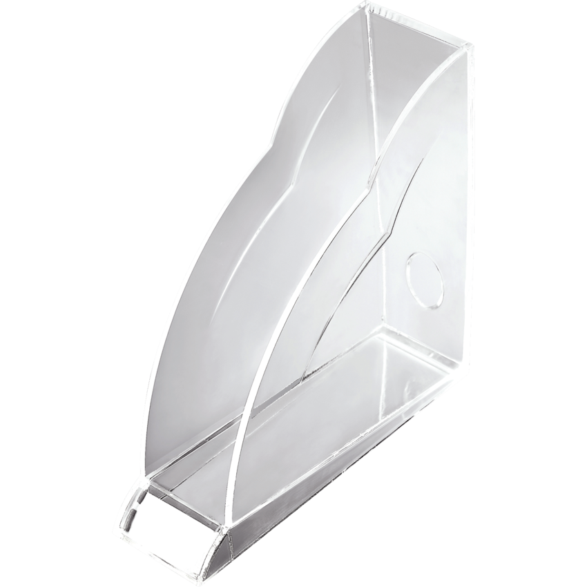 Innovative and elegant desk accessories with clean lines Crystal. Letter Tray. “S” curve for easy access. High capacity; fits 500 sheets. Stackable. 10-4/5"W x 15"D x 3-1/5"H. Made from 100% recyclable, shock-resistant crystal clear polystyrene. Clear.