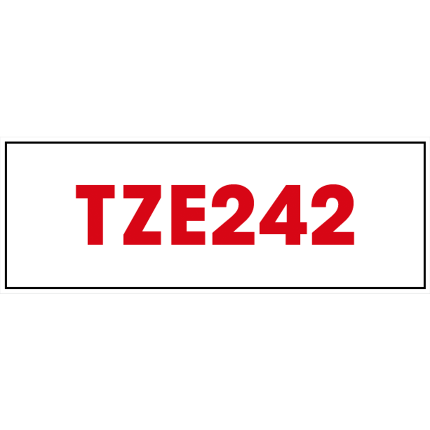 For P-Touch® GL100*, 200, 300, 310, 320, 330, 520, 530, 1000*, 1090*, 1180*, 1200*, 1230PC*, 1250*, 1290*, 1500PC*, 1700AD, 1750, 1800, 1830, 1880, 1900, 1950, 2030, 2100, 2200, 2300, 2430PC, 2500PC, 2600, 2700, 2730. *Not compatible with 18 mm (3/4") or. 18 mm (3/4”). Red on White.